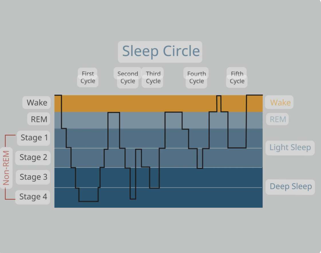The sleep cycle is a recurring pattern of different stages of sleep that our bodies go through during the night. It consists of two broad types of sleep: non-rapid eye movement (NREM) sleep and rapid eye movement (REM).